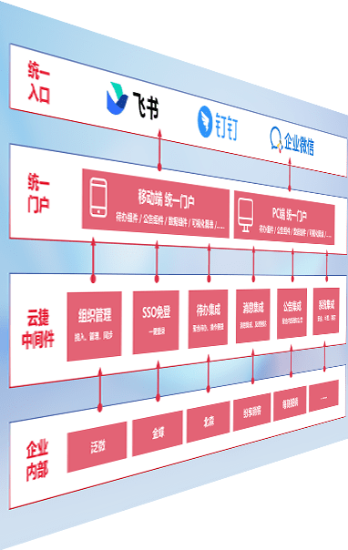 对协作平台提供支持服务,,支持企业应用与协作平台对接,,,包含组织同步、、消息集成、、、、待办集成等。。。支持目前主流的协作平台:钉钉、、、企微和飞书。。。。